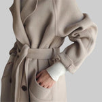 Tento prepracovaný kabát spája minimalistický dizajn s maximálnym štýlom. S klasickou dĺžkou, jemnou textúrou a elegantnou siluetou je ideálnou voľbou pre modernú ženu, ktorá si cení pohodlie aj eleganciu.