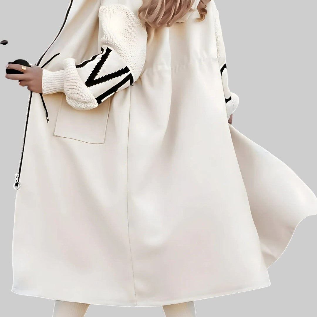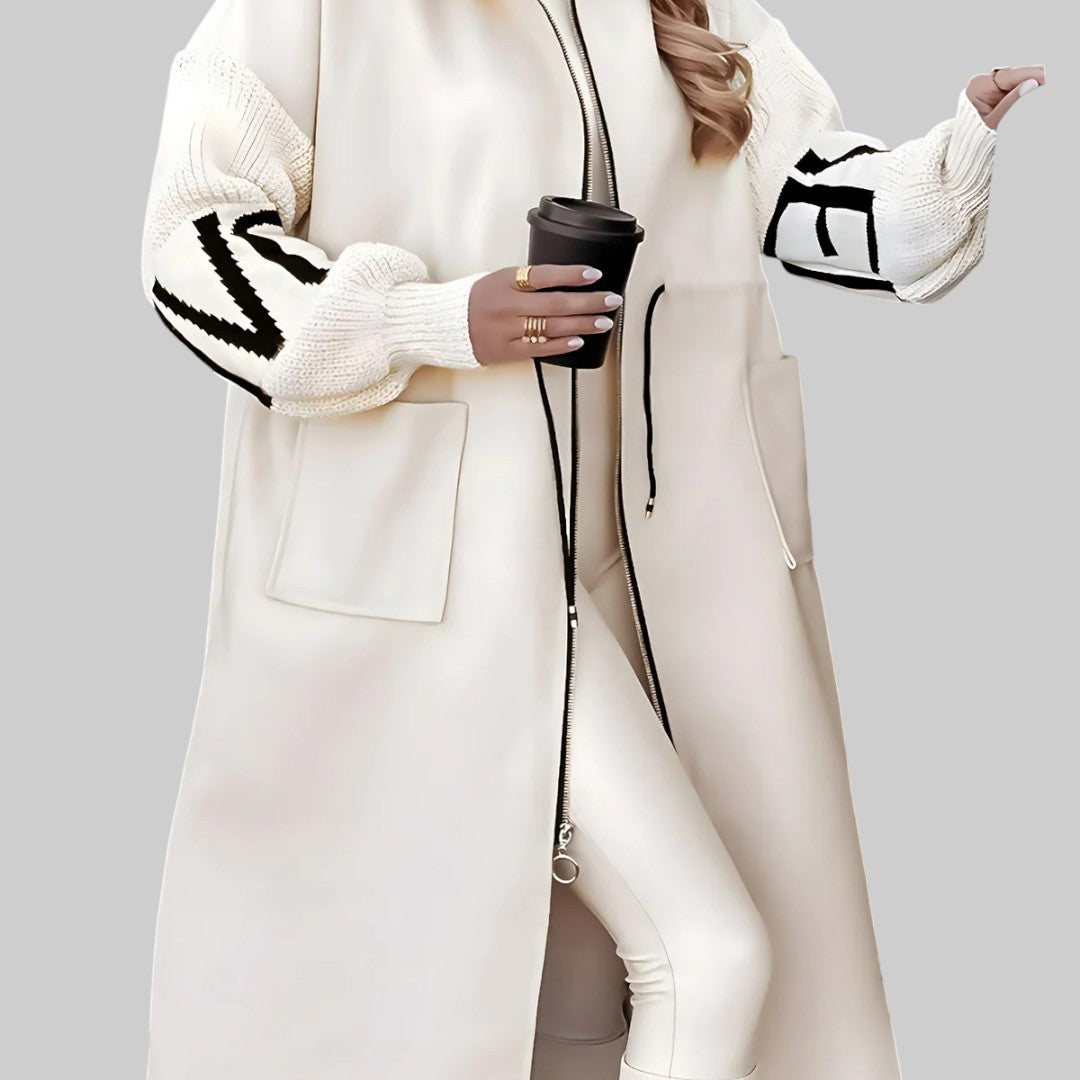 MÁRIA | DÁMSKA BUNDA S PLETENÝMI RUKÁVMI A KAPUCŇOU