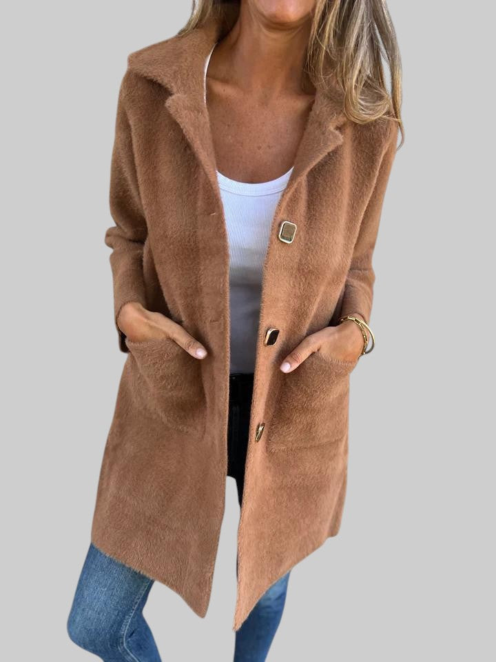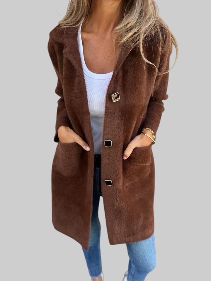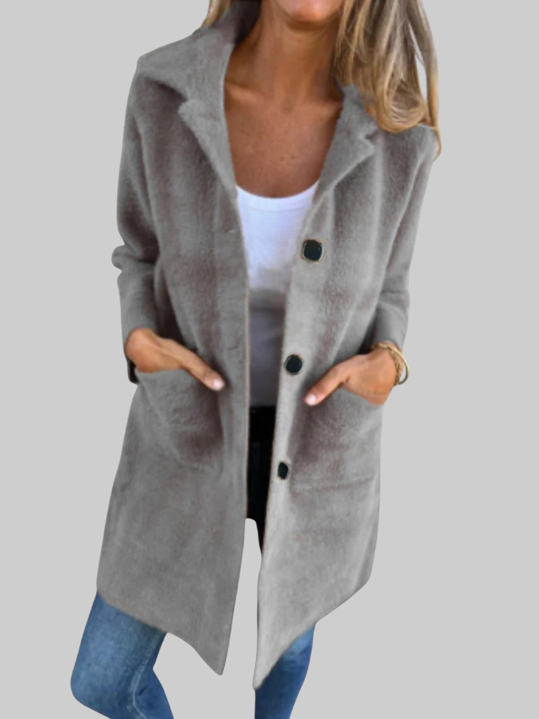 VINETA | DÁMSKY DLHÝ KABÁT S GOMBÍKMI A VRECKAMI