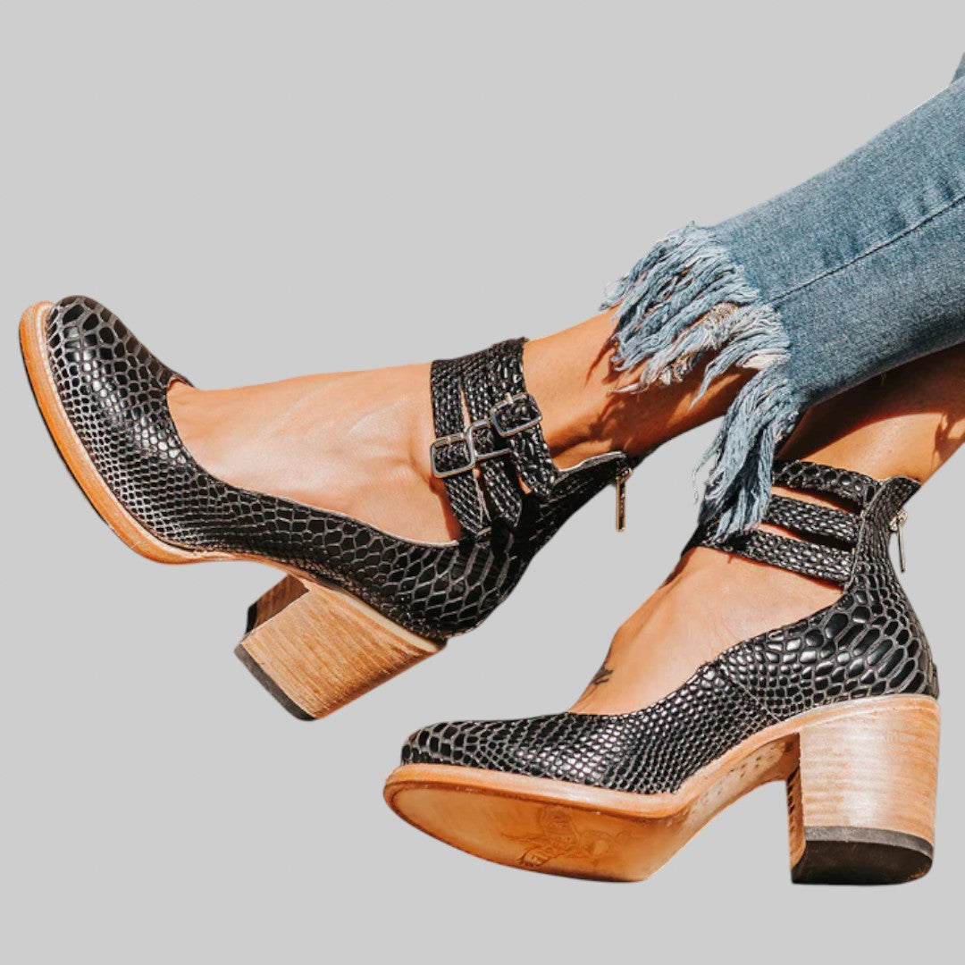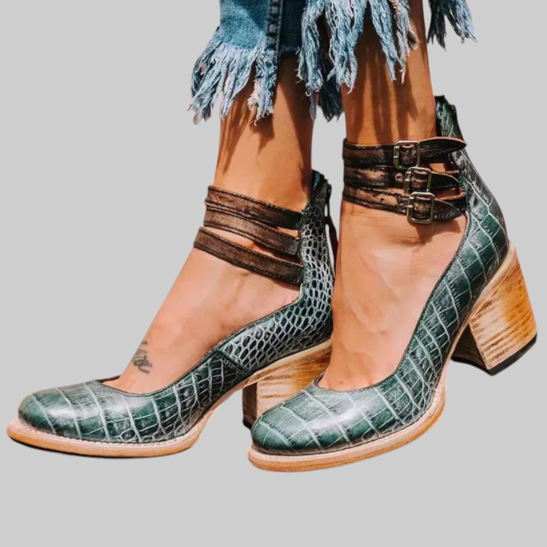 Lodičky Dagmara™ spájajú štruktúru a jemnú eleganciu. S tromi pásikmi okolo členku a širokým opätkom poskytujú optimálnu podporu a zároveň zvýrazňujú tvoje každodenné aj špeciálne outfity.