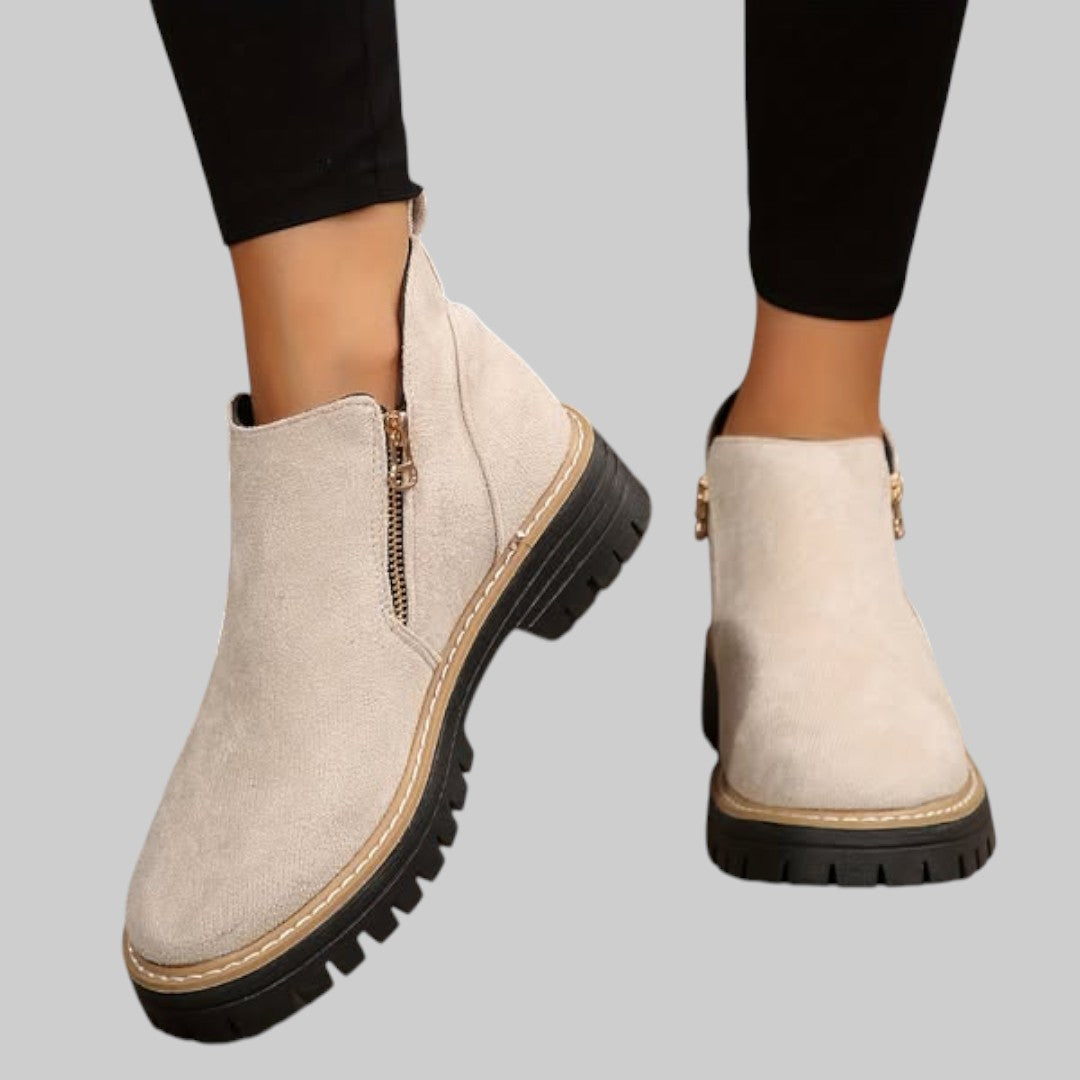 Tieto čižmy kombinujú moderný dizajn s optimálnym komfortom. Pevná podrážka zaisťuje stabilitu a priľnavosť za každého počasia. Vďaka praktickému bočnému zipsu sa čižmy ľahko obúvajú a vyzúvajú. Ideálne na každodenné nosenie.