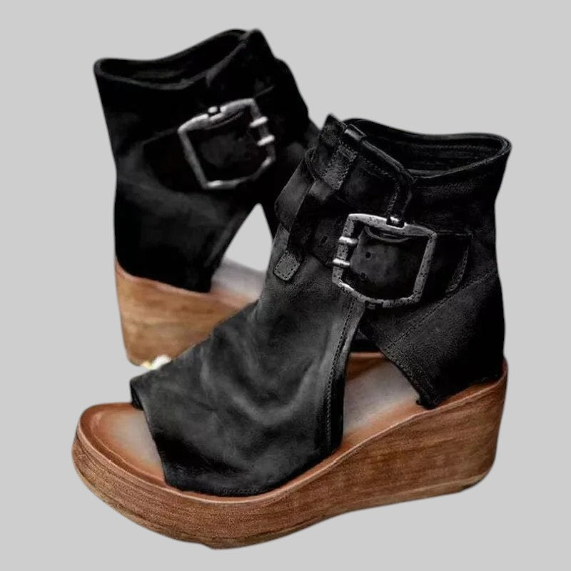 Stohovaný klinový podpätok pridáva výšku bez straty stability