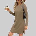 Prečo si vybrať Agnes – ležérne mini šaty s dlhým rukávom a okrúhlym výstrihom: