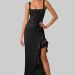 JANA | SATÉNOVÉ KORZETOVÉ ŠATY S VOLÁNMI
