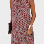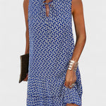 Objavte dokonalé šaty na slnečné dni. S jemne padnúcim strihom a ľahkým materiálom prinášajú tieto bezrukávové šaty sviežosť a eleganciu v každom detaile. Otvorený výstrih a jemná mašľa pridávajú štipku pôvabu, zatiaľ čo geometrický vzor vytvára moderný a sofistikovaný look. Ideálne na popoludňajšiu prechádzku, obed s priateľmi alebo aj do práce s ležérnym nádychom.