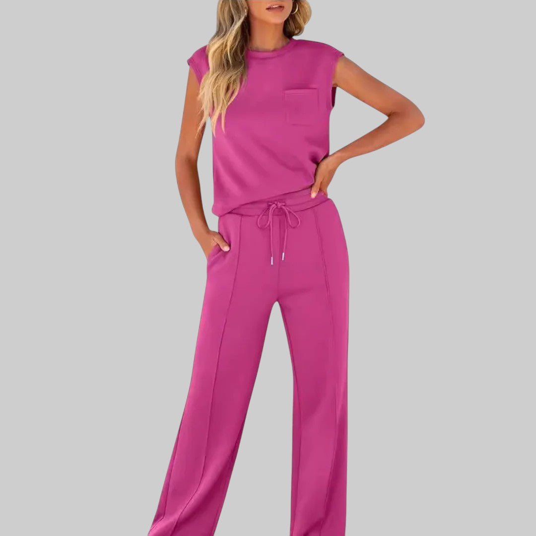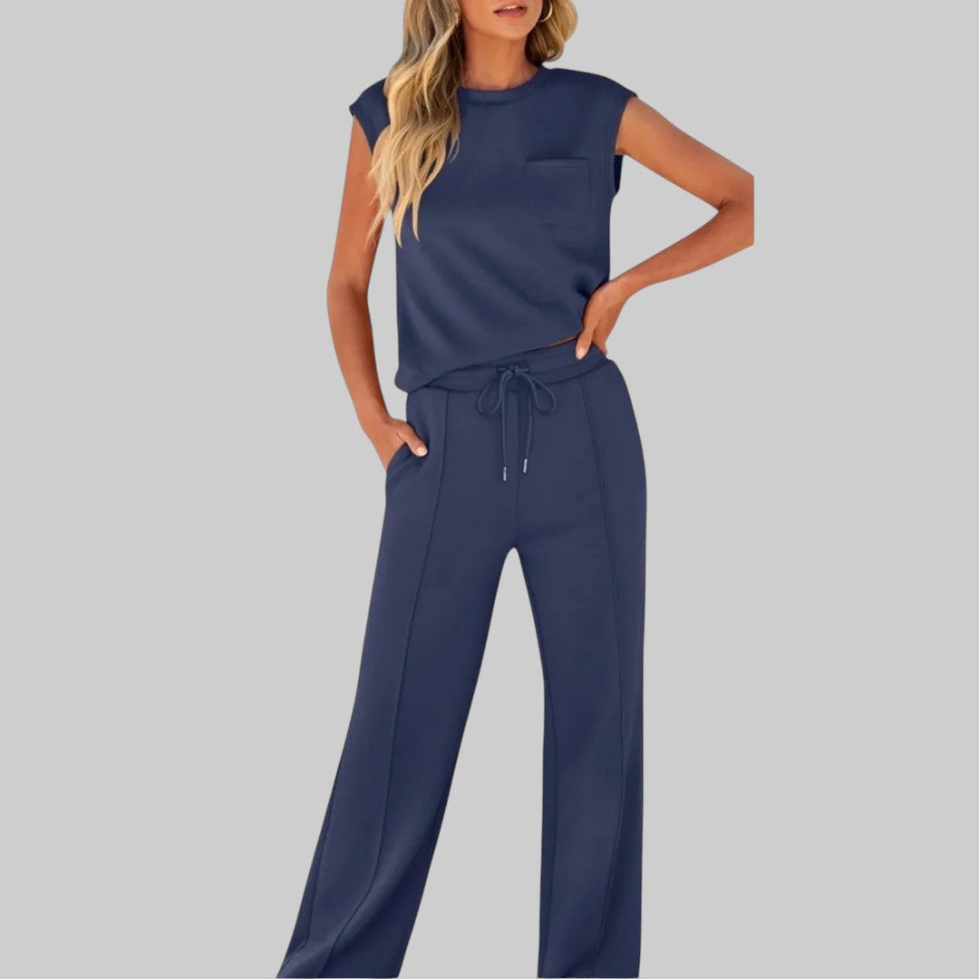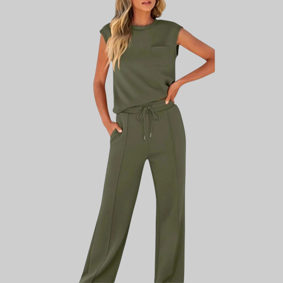 Vychutnajte si nenútenú eleganciu s Kveta – Ležérny mäkký pohodlný set, vzdušným súpravou navrhnutou pre pohodlie a štýl. Ideálny nielen na teplé dni, ale ako dokonalý komplet po celý rok, prinášajúci nádych oddychovej elegancie do vášho každodenného outfitu.