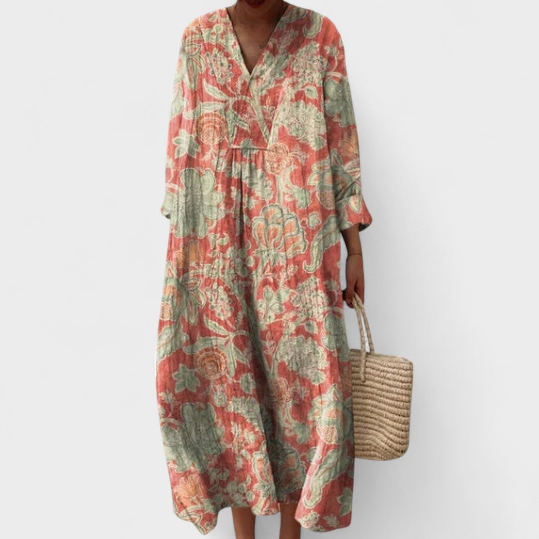 S vintage-inšpirovaným kvetinovým vzorom tieto midi šaty bez rukávov kombinujú romantický šarm s modernou sviežosťou. Voľný strih a bočné vrecká zaručujú praktickosť a pohodlie, ideálne na slnečné dni a voľnočasové výlety. Ľahký materiál a kvetinový dizajn v jemných odtieňoch evokujú krásu klasických záhrad v uvoľnenom a elegantnom vzhľade.