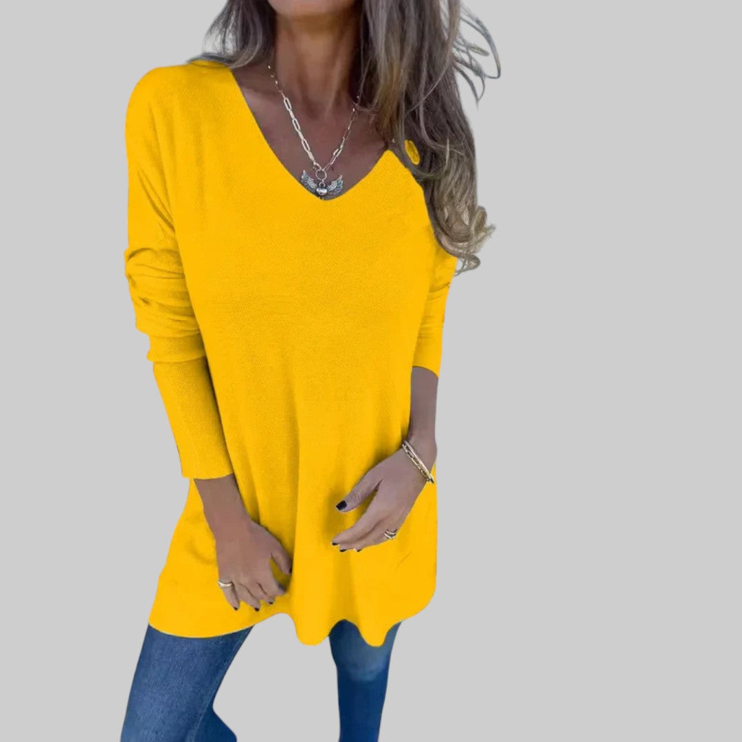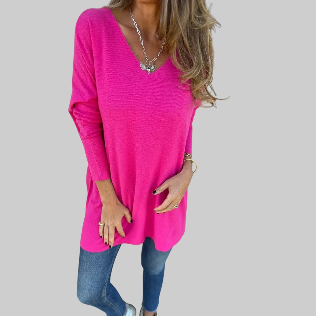 Navrhnutá s voľným, oversize strihom a mäkkou pleteninou, je ideálnym kúskom na vrstvenie alebo nosenie samostatne. Lichotivý V-výstrih dodáva nádych elegancie, zatiaľ čo dlhý strih poskytuje pohodlie a zakrytie – ideálne pre ženy 40+, ktoré milujú nadčasový a jednoduchý štýl.