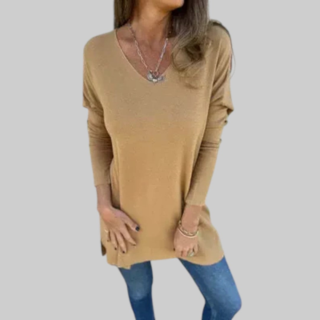 BOZENA | VOĽNÁ PLETENÁ TUNIKA S V-VÝSTRIHOM