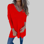 Zostaňte pohodlná a nenútene štýlová s BOZENA Voľnou pletenou tunikou s V-výstrihom.