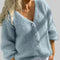 Lichotivý strih: Voľná silueta s mierne oversize prevedením zaručuje pohodlie aj štýlový vzhľad. Výstrih do „V“ opticky predlžuje krk a dlhé rukávy dodávajú elegantný nádych.