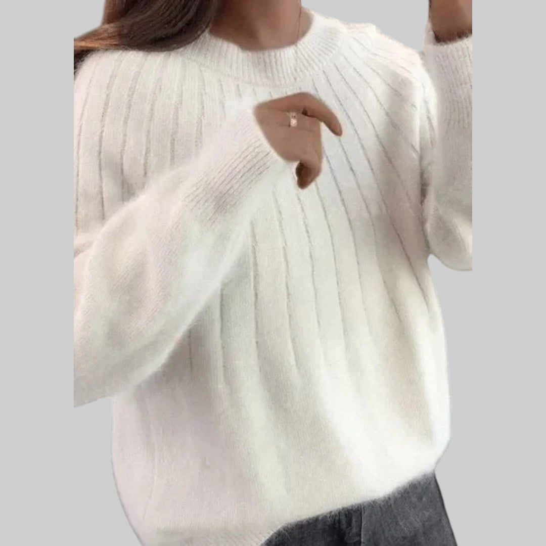 Zostaňte štýlová a pohodlná s nadýchaným svetrom s okrúhlym výstrihom od Simony!