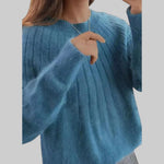 ✅ Elegantný rebrovaný vzor: Sveter je zdobený štýlovým rebrovaným úpletom, ktorý mu dodáva hĺbku a jemnú eleganciu. Vertikálne rebrá opticky predlžujú postavu a zachovávajú príjemný, mäkký charakter. Tento detail povyšuje dizajn nad bežný základný kúsok.