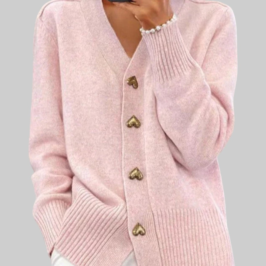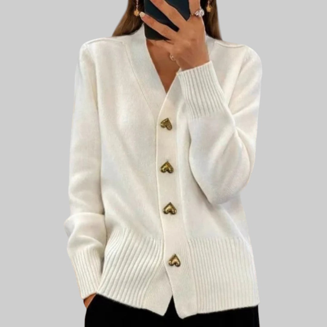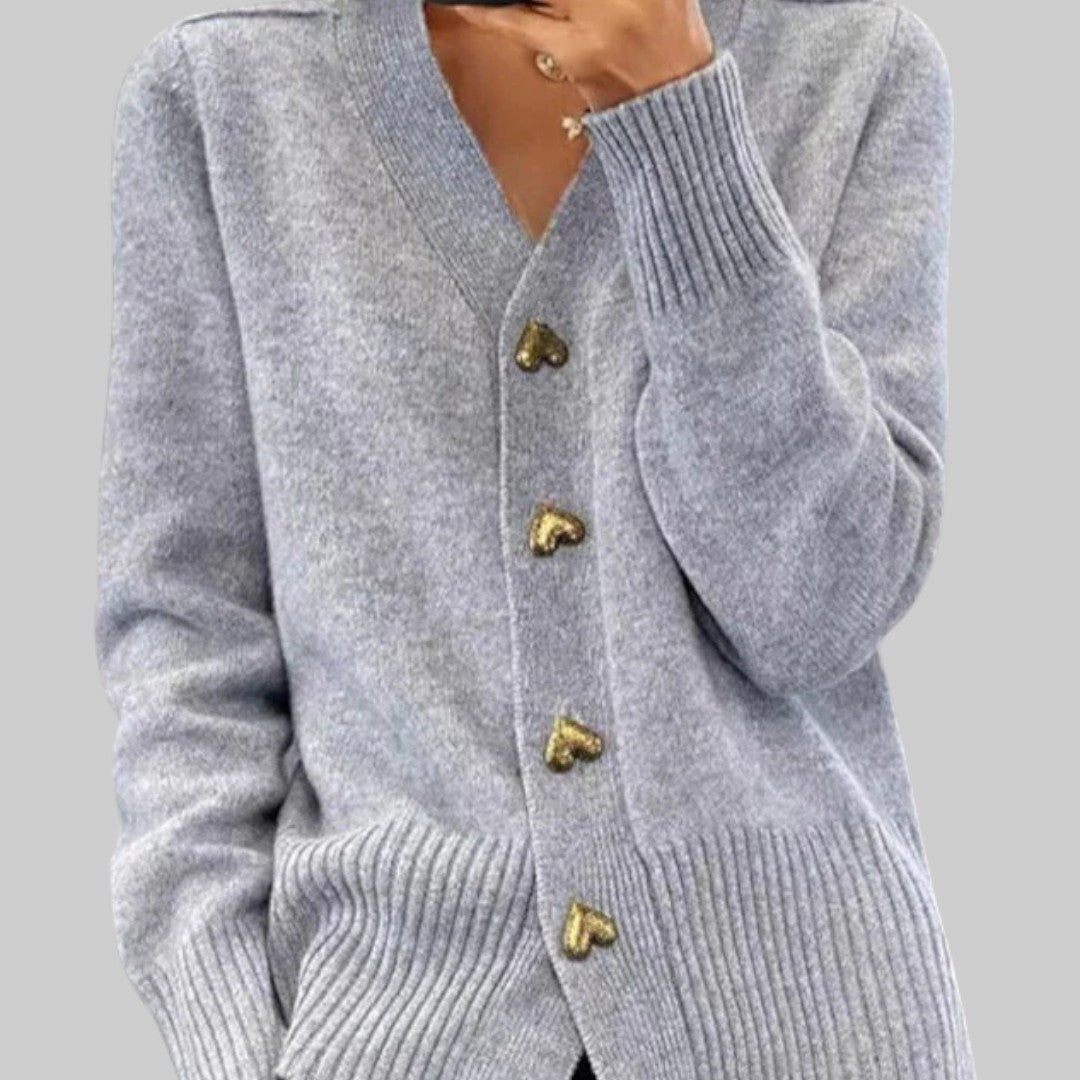 Sveter SYLVIA spája pohodlie, štýl a vysokú kvalitu v jednom výnimočnom kúsku. Vyrobený z mäkkej a odolnej prémiovej látky je príjemný na dotyk a poskytuje komfort počas celého dňa. Hravo pôsobiace gombíky v tvare srdiečok dodávajú ženský a jedinečný akcent. Ideálna voľba na bežné nosenie aj na útulné večery.