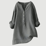 Táto nadrozmerná košeľa je ideálnou voľbou pre ženy, ktoré hľadajú uvoľnený a štýlový vzhľad. Voľný strih zaručuje maximálne pohodlie, zatiaľ čo jemné gombíky a nenápadný V-výstrih dodávajú elegantný nádych. Košeľa má mierne asymetrický lem, ktorý pôsobí moderne a lichotivo. Noste ju s džínsami, legínami alebo sukňou – hodí sa ku všetkému.