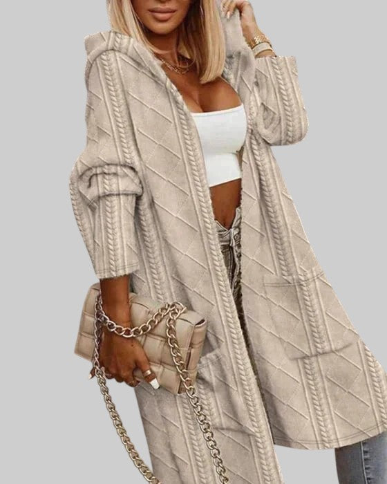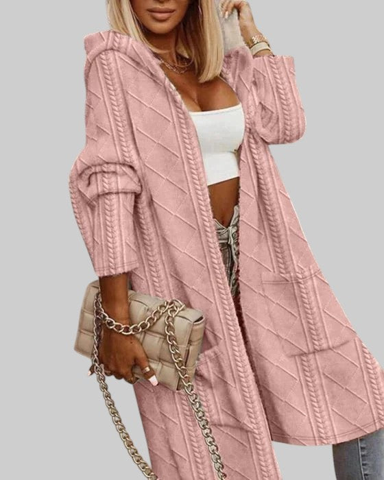 JOHANA | PREDĹŽENÝ PLETENÝ KARDIGÁN S KAPUCŇOU