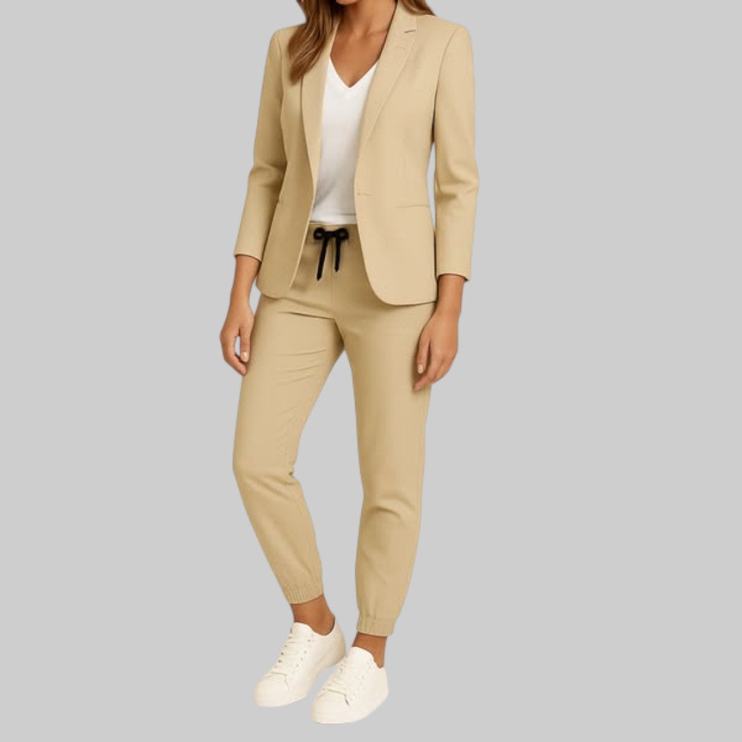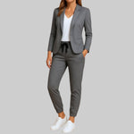 Zvýraznite svoj štýl dokonalou kombináciou elegancie a pohodlia. Dvojdielny dámsky oblek Katarína™ je navrhnutý pre modernú ženu, ktorá chce začať deň s gráciou a ukončiť ho štýlovo. Vďaka kvalitným materiálom a všestranným možnostiam kombinovania ste pripravená na každú príležitosť – od práce po víkend.