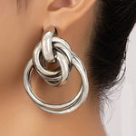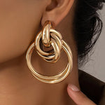 Moderný dizajn s sochárskou inšpiráciou. Tieto náušnice zo zlatých prepojených kruhov dodávajú každému outfitu odvážny a sofistikovaný nádych.