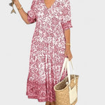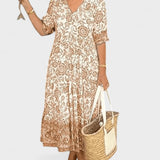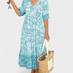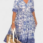 Tieto midi šaty kombinujú voľnú siluetu s detailmi navrhnutými tak, aby zvýraznili vašu prirodzenú eleganciu. V-čkový výstrih s jemným riasením pod prsiami vytvára jemný pád, ktorý krásne kopíruje tvar tela, zatiaľ čo jemne nadýchané ¾ rukávy pridávajú extra šarm. Model je vyrobený z ľahkého a priedušného materiálu a spodný lem s jemnou volánovou ozdobou zaručuje voľnosť pohybu a pôvab pri každom kroku. Šaty sú všestranné a jednoducho sa hodia na ležérny obed, prechádzku pri mori alebo stretnutie s priateľkami.