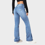 Rozšírené nohavice pre šik vzhľad: Elegantný strih s rozšírenými nohavicami predlžuje nohy a vytvára vyváženú siluetu, ktorá dodá outfitu sofistikovaný nádych. Či už ich kombinujete s teniskami pre ležérny look, alebo s vysokými opätkami pre elegantný štýl, tieto džínsy perfektne doplnia váš štýl.