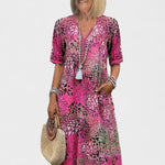 Objavte šaty, ktoré kombinujú štýl, komfort a slobodu pohybu v jednom. S jemne padnúcim strihom, výstrihom do V a pohodlnými rukávmi sú ideálne na letné prechádzky, dovolenky alebo uvoľnené spoločenské chvíle. Voľná silueta poskytuje komfort a prirodzenú pohyblivosť, zatiaľ čo moderný dizajn lichotí všetkým typom postáv.